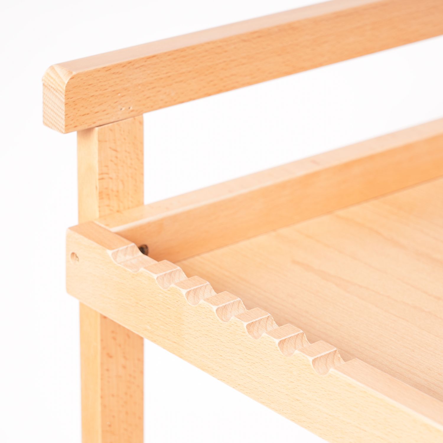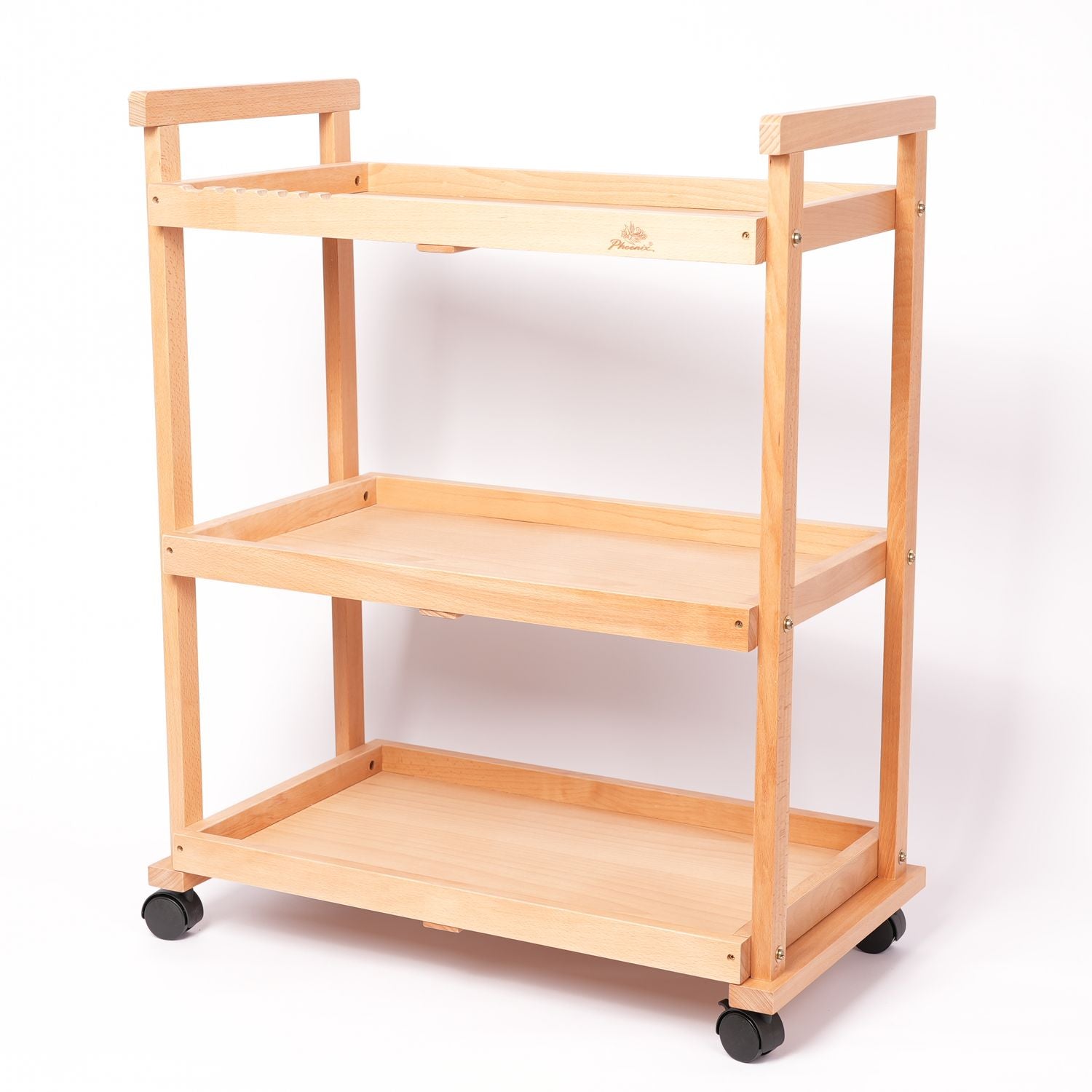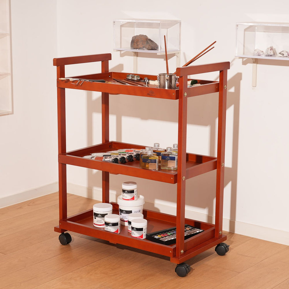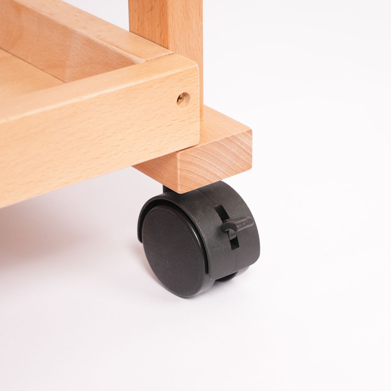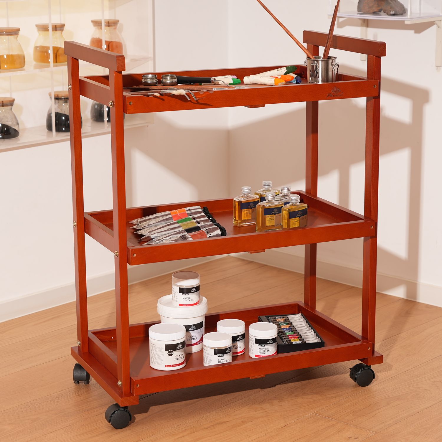 Crafted from durable solid beechwood, this 28.1" W × 15.7" D × 34.8" H art cart offers strength, stability, and a smooth oil-finished surface for safe daily studio use.