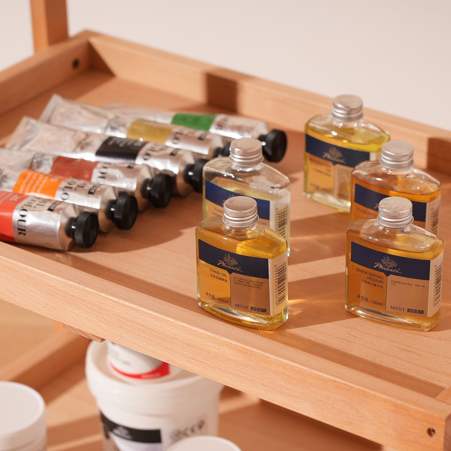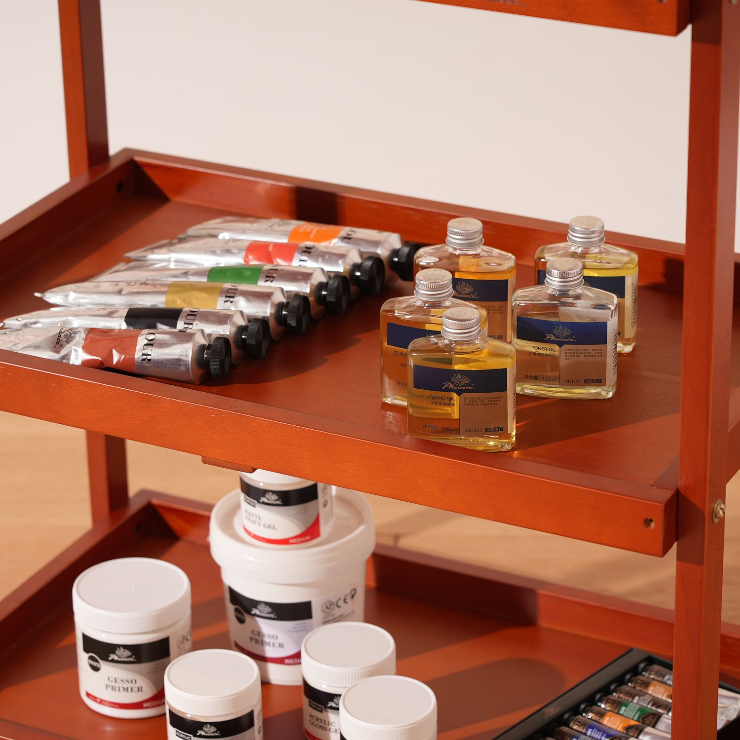 Three spacious open shelves keep paints, brushes, canvases, and tools organized and within reach—perfect for studios, classrooms, or home creative spaces.