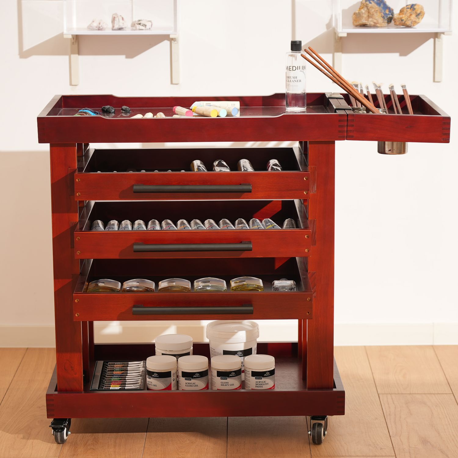 - Multi-tier design integrated Storage and Painting Cart