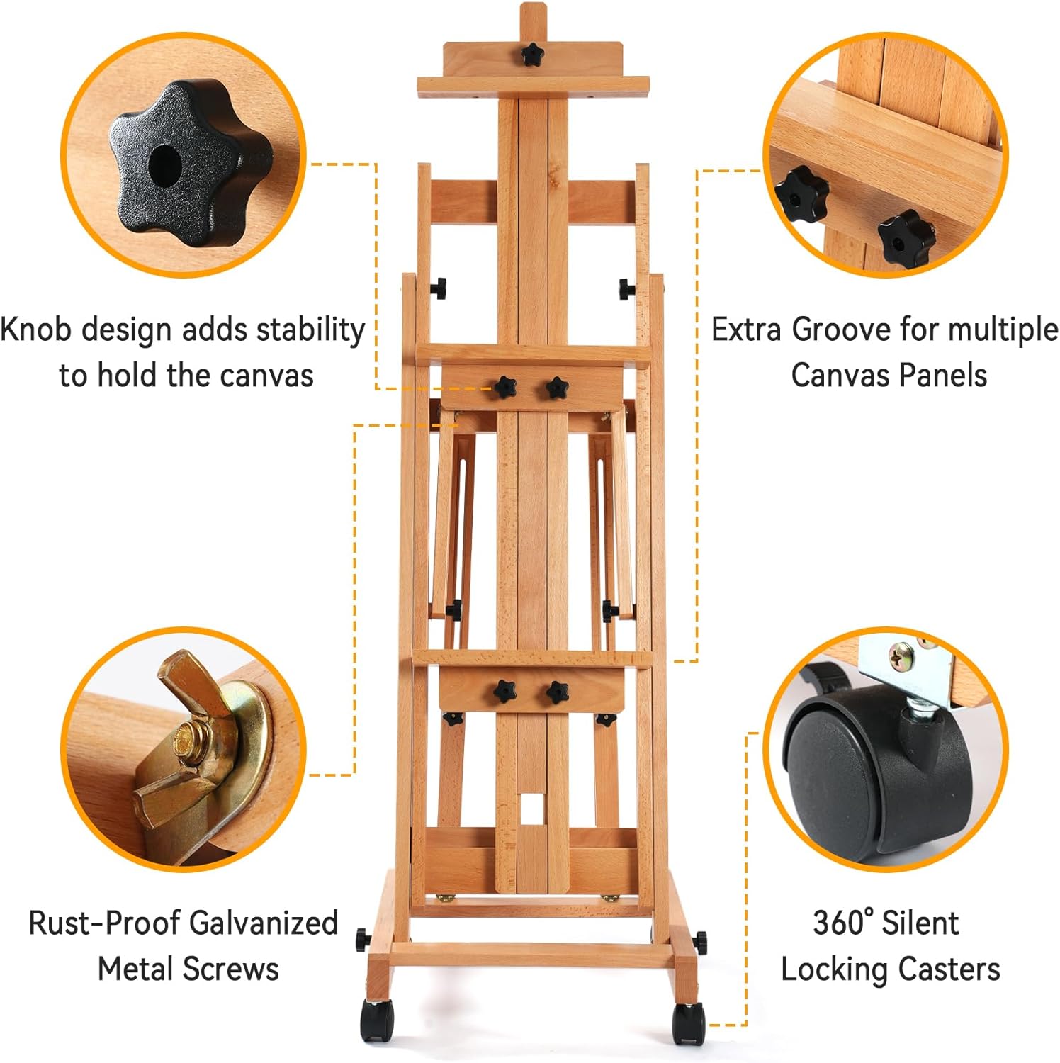 Professional Adjustable Wooden H-Frame Easel for Studio Painting