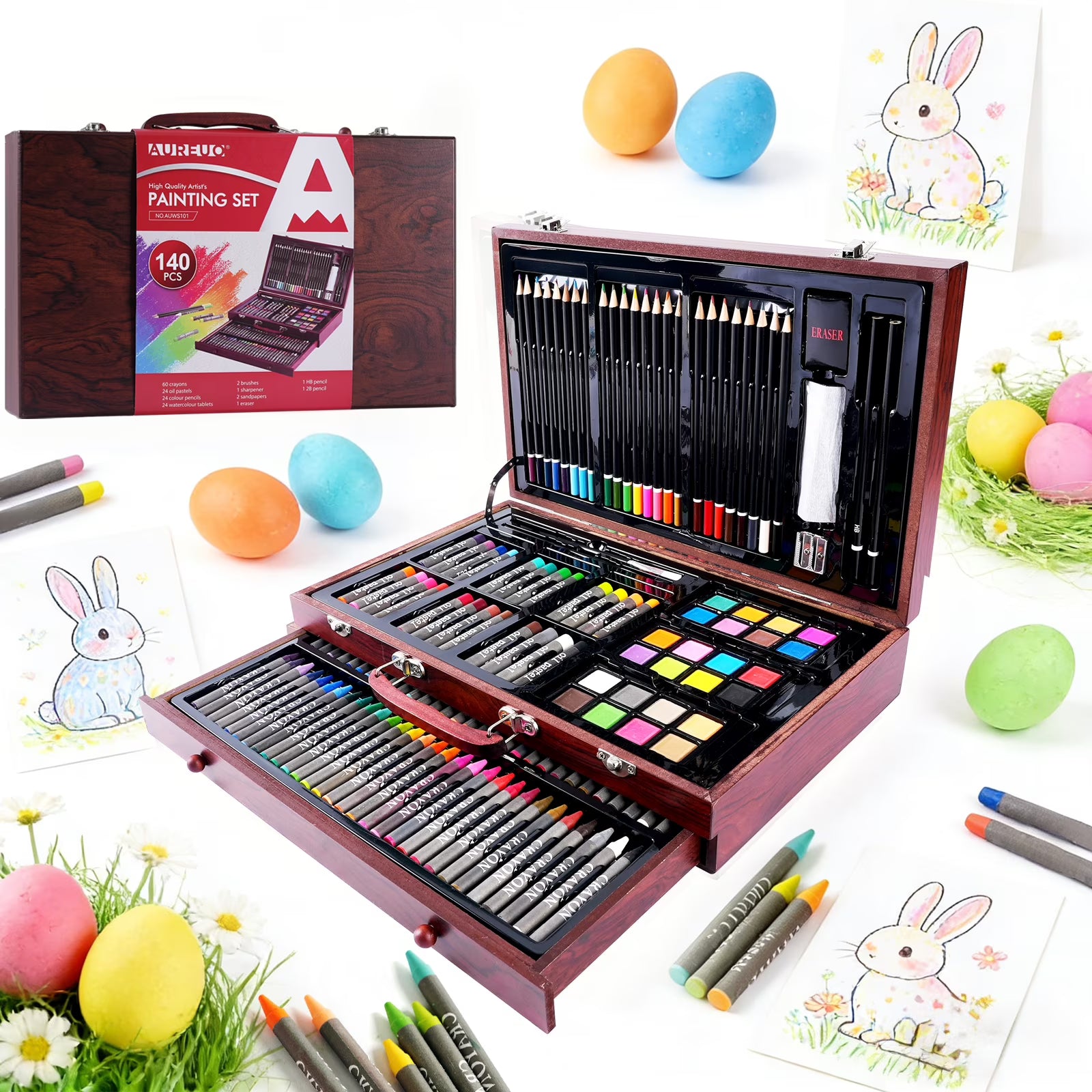 AUREUO 140-Piece Deluxe Art Set with Wooden Storage Case
