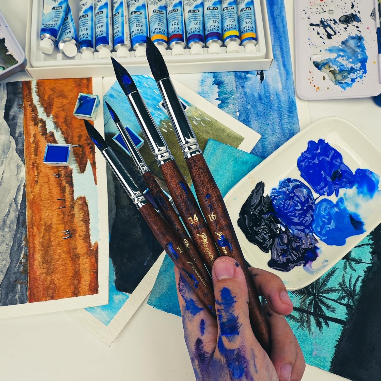 PHOENIX Squirrel Hair Watercolor Paint Brush Set